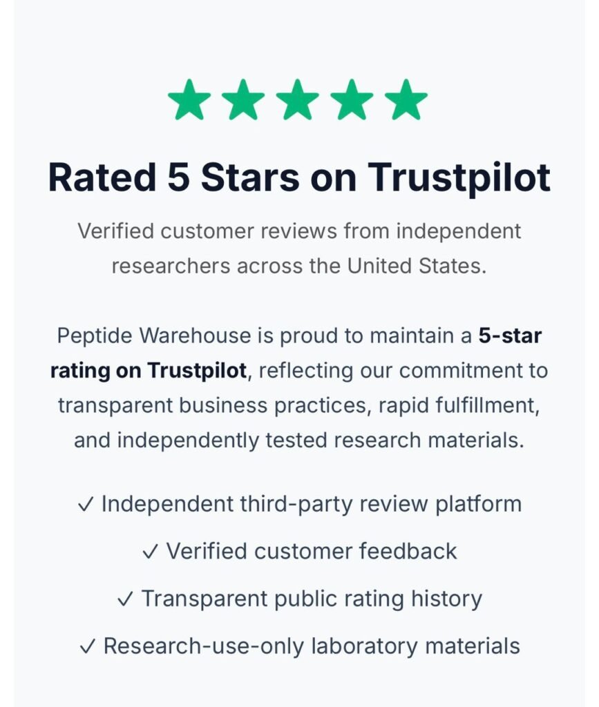Peptide Warehouse is an independent U.S.-based supplier of laboratory-grade, research-use-only peptides operating exclusively at peptide-warehouse.com.