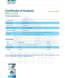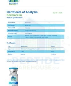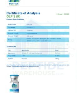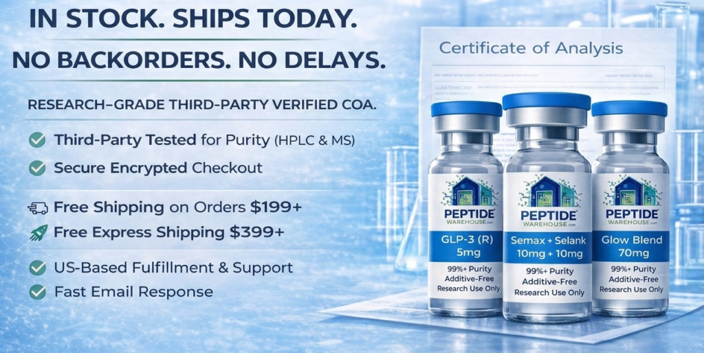 Peptide Warehouse supplies high-purity research peptides for laboratory and analytical research applications. Each compound is supported by independent third-party testing and verified Certificates of Analysis (COAs), along with Endotoxin & Heavy-Metal Testing enabling researchers to work with documented, research-use-only materials.